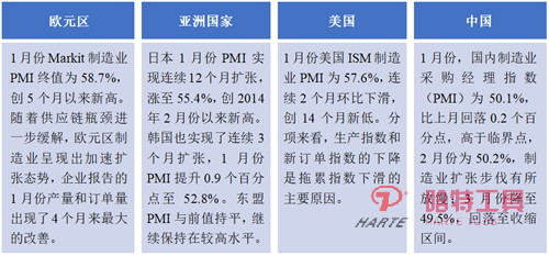 圖1 近期世界主要經濟體PMI指標情況